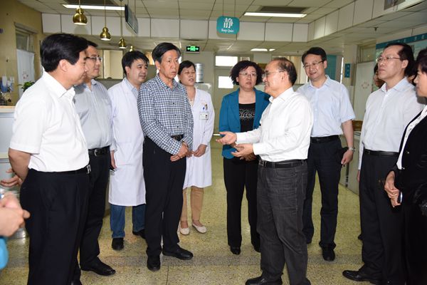 调 研组详细了解了我院与首都医科大学附属北京天坛医院全面合作的具体措施和进展,以及医院脑血管病专业的诊疗特色、设备配置及床位数量等情况,听取了医护人 员代表的意见和建议。在神经重症监护病房,段惠军委员一行仔细询问了病床数、患者数和患者的诊治情况;在神经外一科和神经内一科病区,与医护人员进行了面 对面的交流。