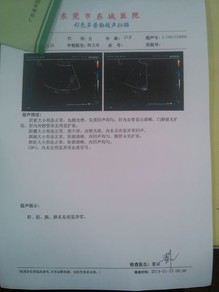 经过在广东省中医院成永明教授岭南无痛蜂疗工作室蜂疗20次后,再次在东莞市东城医院B超检查,显示未见异常。