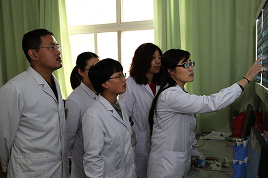 张燕教授团队分析病人的病情。 石家庄第一医院供图