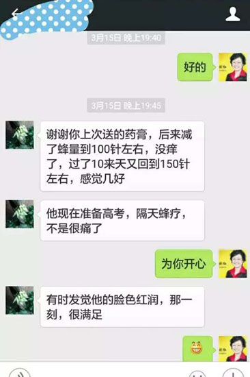 今天收到最开心的微信!去年医院让放弃治疗的孩子通过11个月的蜂疗康复了!而且高考取得优异的成绩,从心底为他高兴!