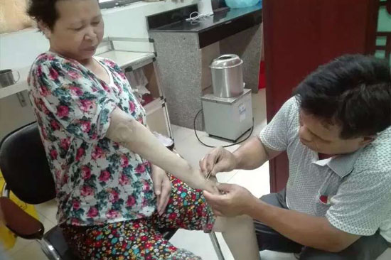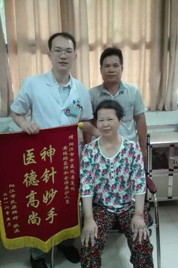 好姨患了30多年的类风湿性关节炎,被该病折磨了半辈子,该用的西药用尽,病情控制欠佳。经过。经过两个多月的蜂针治疗,现在病情稳定。今天出院还给我送了面锦旗,谢谢您对我们工作的肯定,也谢谢您对蜂针疗法的肯定。同时,我们也感恩为人类健康牺牲了宝贵的生命的蜜蜂(PS:蜂针疗法对下述疾病疗效显著:风湿病、类风湿关节炎、免疫力低)