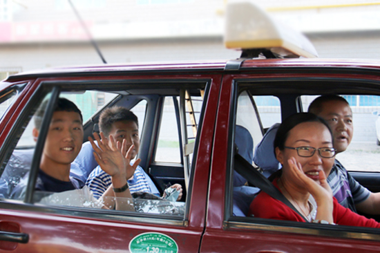 6月7日是2015年高考的第一天,早上7时,在兵团十二师高级中学,雷锋车队的近百辆出租车、私家车参与爱心送考。