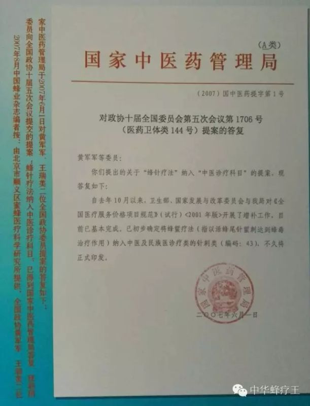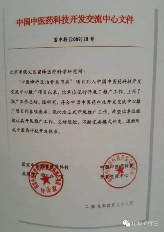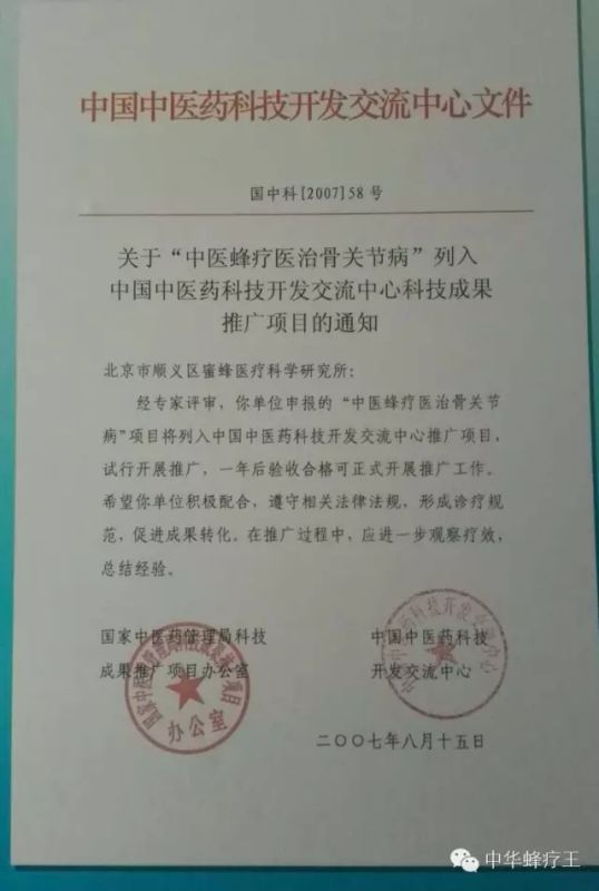 国家中医药管理局"蜂蛰疗法"红头文件