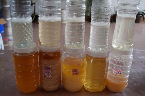 第三招:观察结晶 这个方法很多人都知道,但是有很大的漏洞。理论上说所有蜂蜜都会结晶,但是得具备低温的条件,同时,有的蜂蜜结晶所需要的时间长,有的则短。 往往易结晶的蜂蜜有:油菜蜜,荆条蜜,椴树蜜;虽然这些蜂蜜容易结晶,但是放冰箱冷藏也得一段时间,有的半个月,有的则需要2、3个月。没有哪款蜂蜜会一夜就结晶的。 不易结晶的蜂蜜主要是:洋槐蜜。纯度高的洋槐蜜结晶是极少而且很慢,也许一年都不一定有多少,但也有些洋槐蜜含有杂花,会出现大量结晶的现象。所以这个方法漏洞比较多,大家只有多学习蜂蜜知识,才能驾驭的了。
