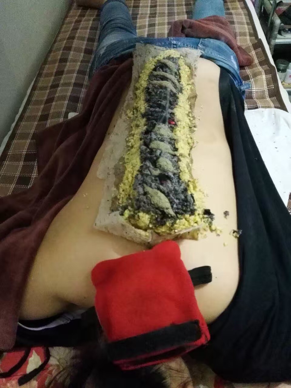 类风湿。一个半小时对比。多年的督灸经验告诉我们,湿重者,排湿多。病重者,排湿颜色更深。最右边那张是一位亚健康客户做的。排湿情况大不相同吧?