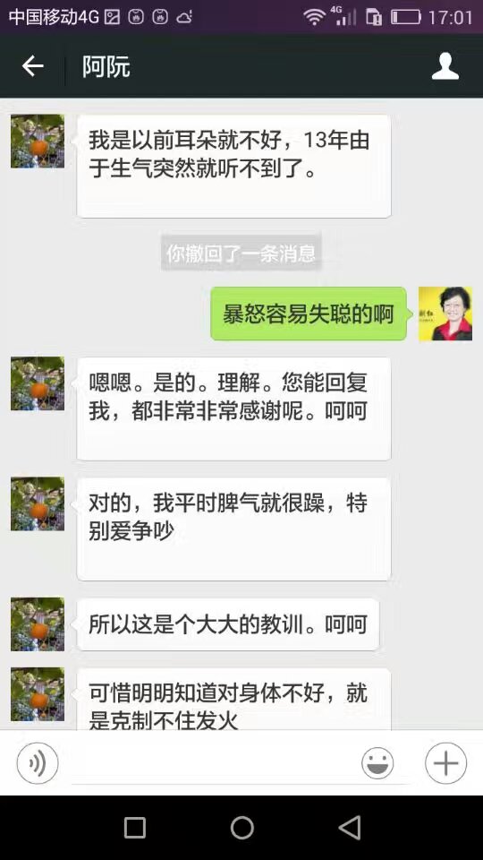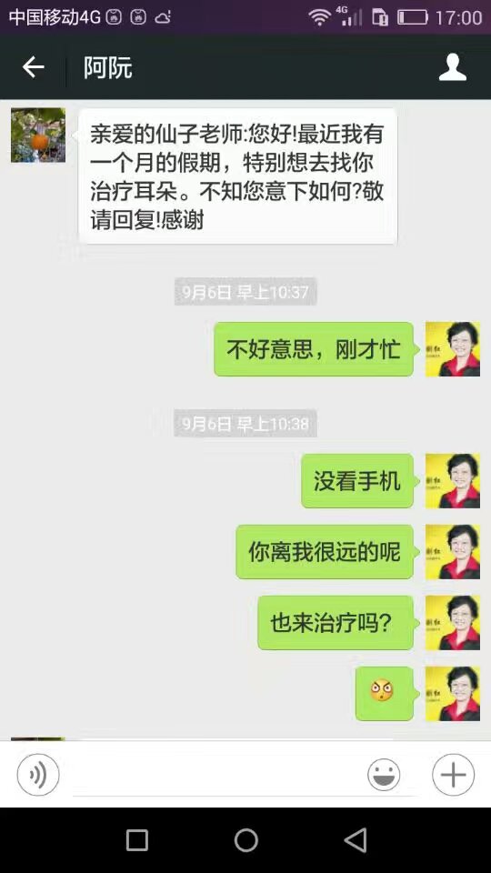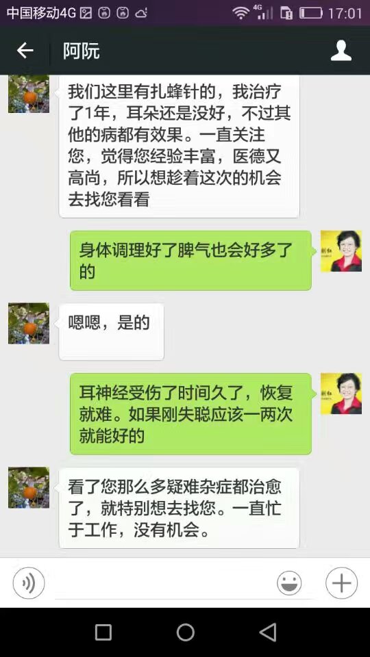早晨刚到店就见新疆的患者满脸洋溢着开心喜悦之情,说她经我昨天治疗一次晩上见效了,说晚上起床没耳鸣,说从来耳鸣没有停止过啊...看她夫妇俩人开心的样子,我也很高兴。见效了,我也松了一囗气。