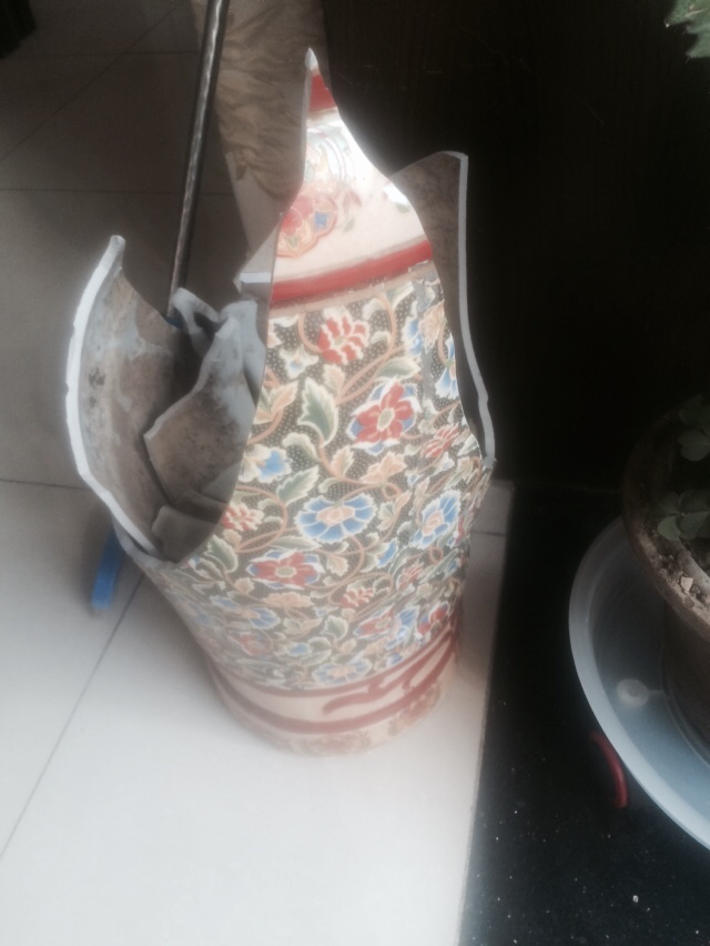 今儿早上醒来想到阳台处望一望,呼吸一下新鲜空气!可一转身睡衣粘在一盆儿绿植上,这些我叫不上名儿的绿植长了许多刺儿,剐到衣服还不撒手,让我直接把它们干倒了!客厅和阳台一片狼藉,瓷片遍地!幸亏老婆上班去了,老太太上早市买菜去了,不然一捅儿数落可就在所难免喽!