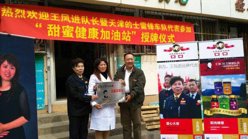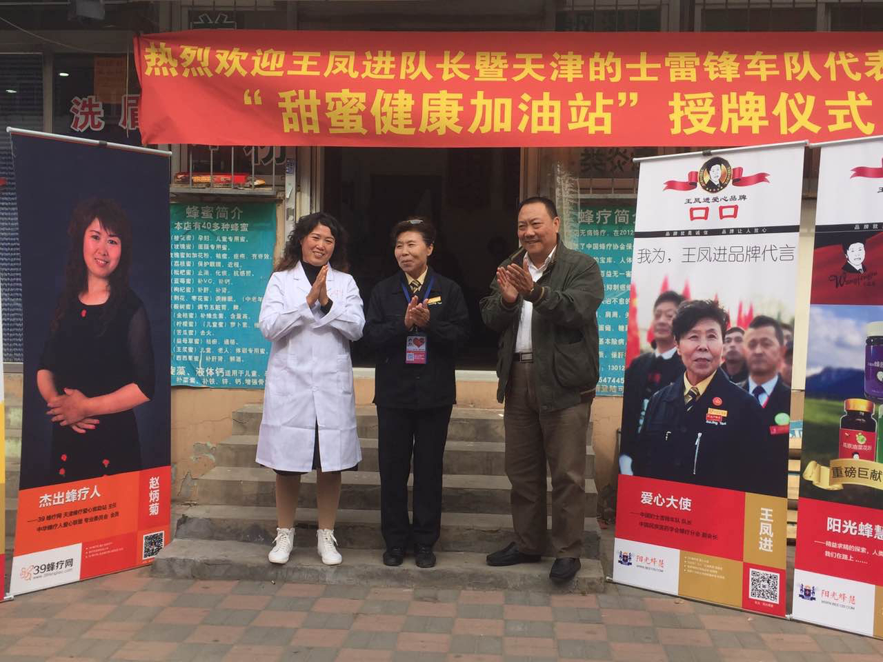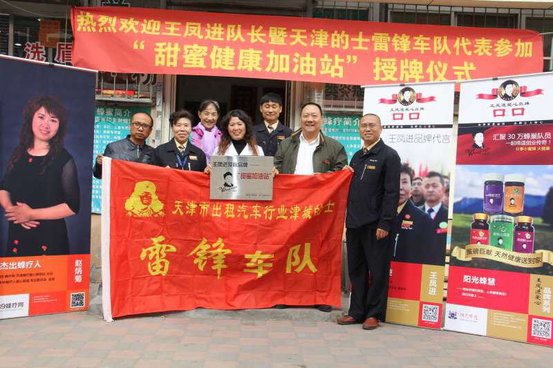 首先,由驱车一百六十公里来到现场的、中国雷锋车队队长王凤进大姐讲话,中心内容是代表全国各地的出租车司机,表达对阳光蜂慧科技公司以及各地蜂疗馆的感谢!首家“王凤进爱心品牌甜蜜健康加油站”在赵炳菊蜂疗馆的建立,标志着学习雷锋精神、传播雷锋文化的司机师傅们,真正拥有了属于自己的健康驿站。