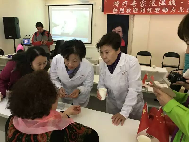 为了更好地让雷锋车队队员们体验到蜂疗的神奇效果,传播传统中医蜂疗文化,近日北京举办了“为雷锋车队送健康,蜂疗义诊送爱心”活动。此次活动受到邀请来到北京,为雷锋车队队员们一些常见职业病进行蜂疗义诊!让大家在给社会付出爱心的同时,也能够得到蜂疗给大家带来的健康!后给朝阳区民革党员进行蜂疗讲座,让人们走近蜂疗,了解蜂疗。并去香山养老院看望老人们,给老人们带来健康与甜蜜。