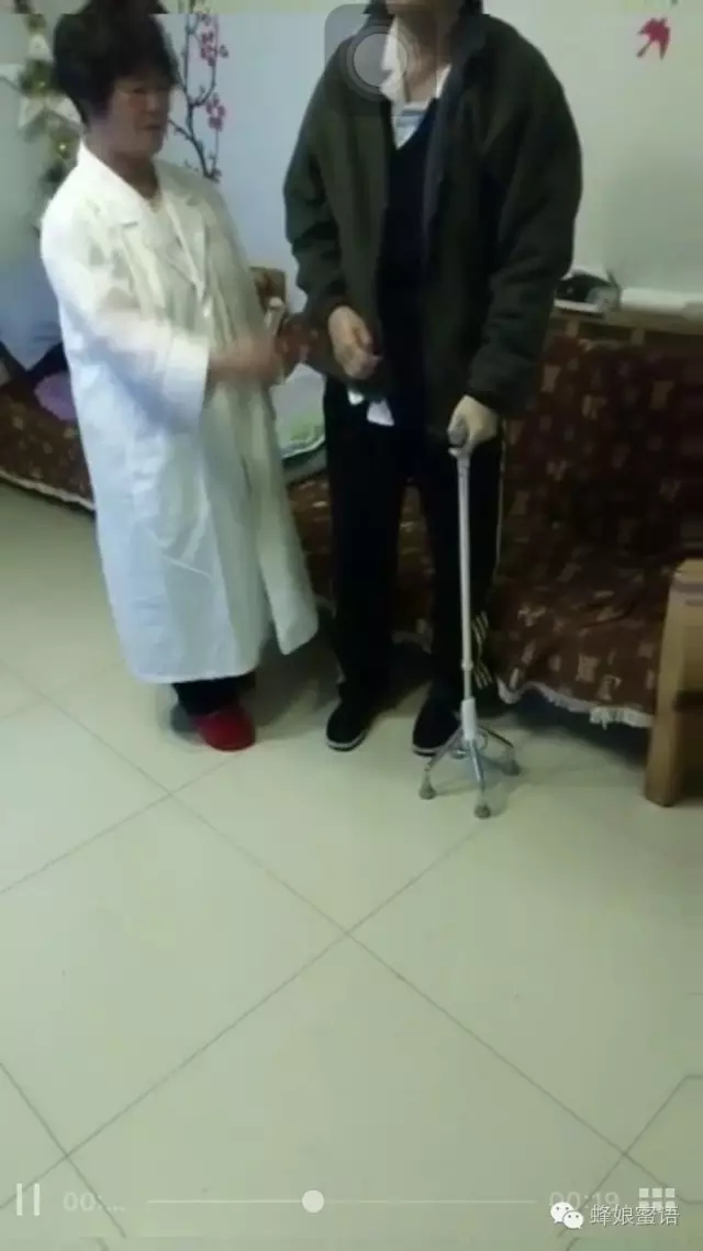 我父亲蜂疗第五天可以推着轮椅后退走路。
