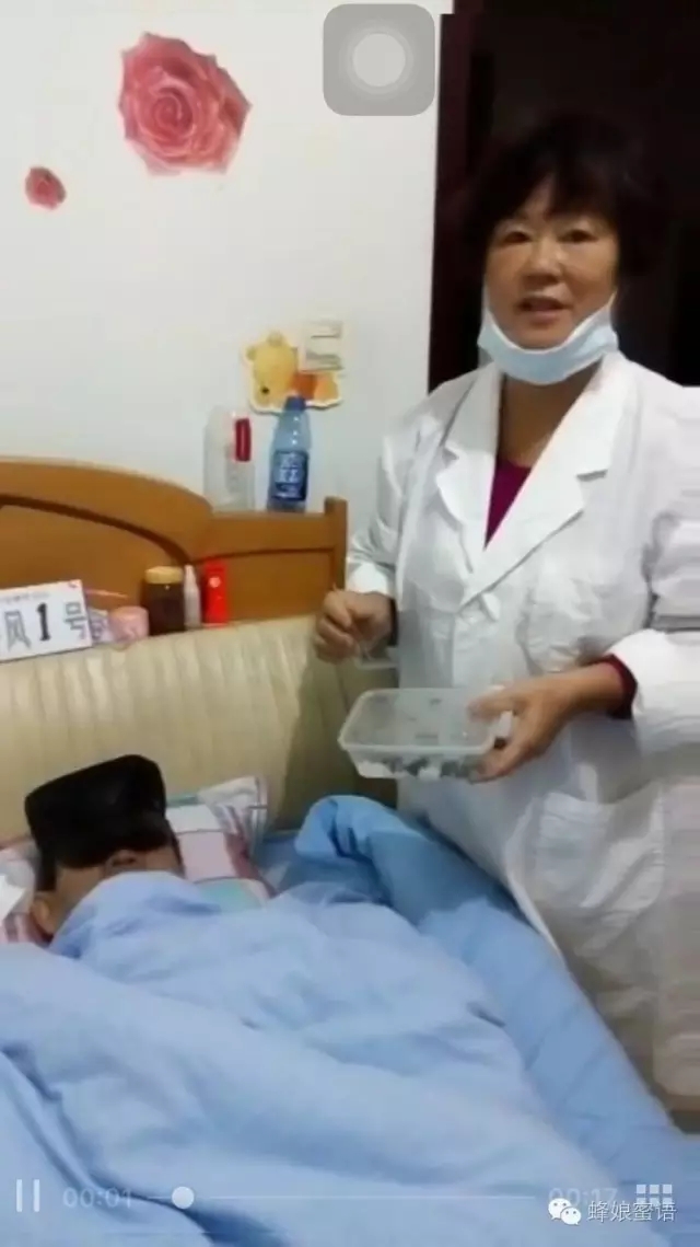 就在11月10日,请东莞的蜂疗师杨大姐到家里用民间疗法-蜂疗传教我为父亲治疗,杨大姐刚下飞机到我家,观察了一夜后,并且做了一个周密治疗方案。当扎完第一次针后我父亲可以开口叫“杨大姐你好棒”。