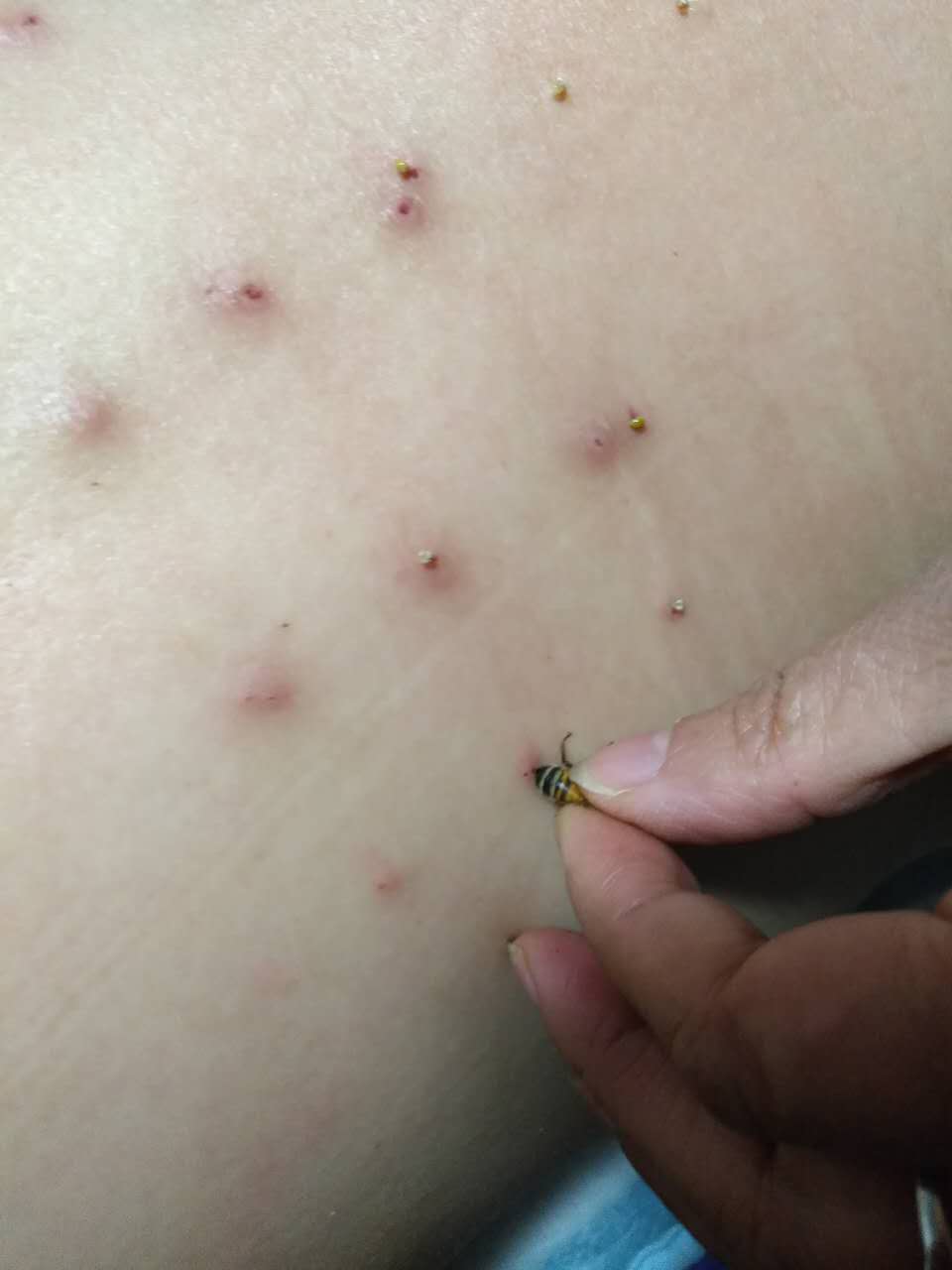 钱某,因腿部感觉有根筋牵扯着走不了道来我这里进行蜂疗,是由于腰椎五和骶一膨出。蜂针针刺环跳、腰阳关等穴位,经过两次蜂疗后就没有牵扯的感觉了,走路顺畅了。现在还在继续巩固治疗,之前不良的症状全都消失。