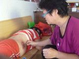 大姐她在娘胎里生的疮,出生后做了手术,60年后影响她无法行走。因腰椎狭窄,膝关节长骨刺,每年都去留医几次,吃药打针起不到作用,医生建议手术,她特别害怕没办法她只好要求出院。她说:吃了许多保健品也无效,求医无门 ,正在全家人为她的病情犯愁时,朋友介绍认识了杨大姐。