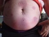 当刘大姐刚接受蜂疗的第九天里,因蜂毒的不良反应,有发烧39度,呕吐,大量的排出半年在肠道的宿便,好象水泥浆一样的黑相当的臭。蜂毒将体内的毒素清理后,经过三个疗程的治疗后,各方面都有了很大的改善,行走方便多了,身体上的腐烂也得到了修复,并且吃蜂四宝,特别是吃了青梅蜜,病情好了许多!缝人就说:放弃西医,蜂疗挽救了我的生命!