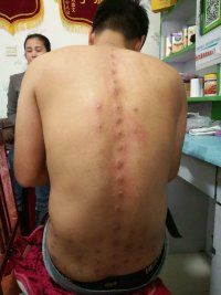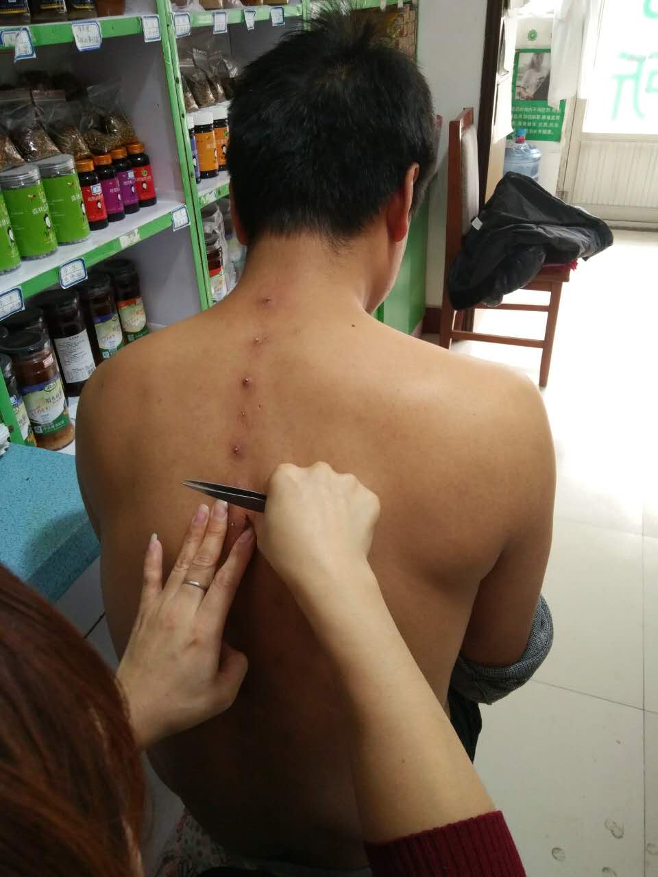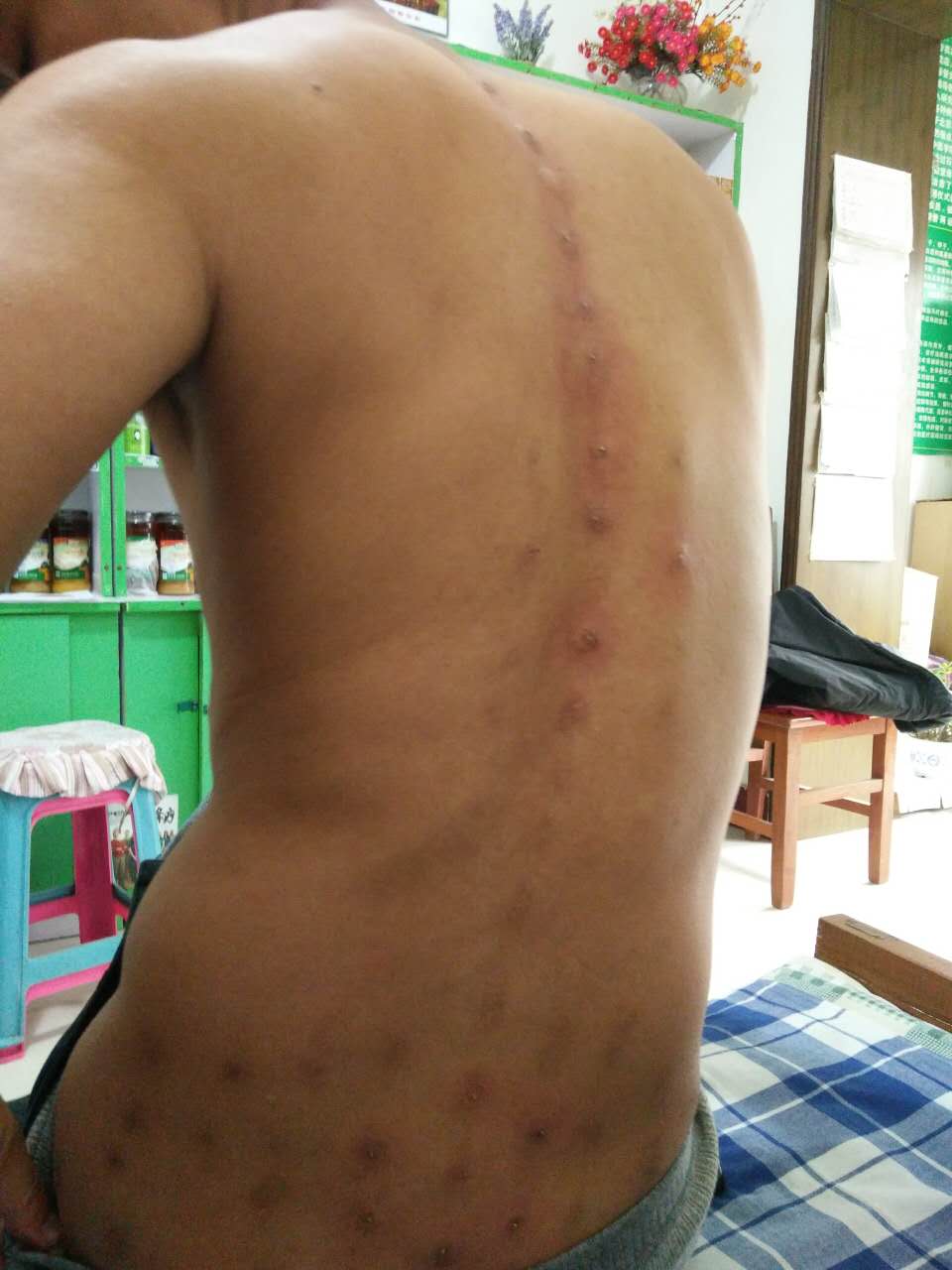 zhe 这是塘沽的一个7年的强直脊柱炎,每年去大连蜂疗门诊蜂疗一个月,连续去了6年了。每年只蜂疗一个月就可以保证一年后背不痛。2006年12月1号慕名找到我咨询蜂疗,我告诉他每年一个月的蜂疗对他的病来说达不到治疗的效果,继续恶化。每年必须蜂疗半年,配加蜂产品,效果最佳,可以保证病情康复。
