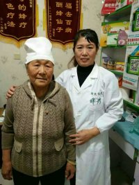 黑龙江80岁老太太住在女儿家天津滨海新区塘沽,每天从塘沽开车150里路程来本店蜂疗。一个月的类风湿治疗期满。老太太对治疗效果非常高兴,要回家了,说明年再来。