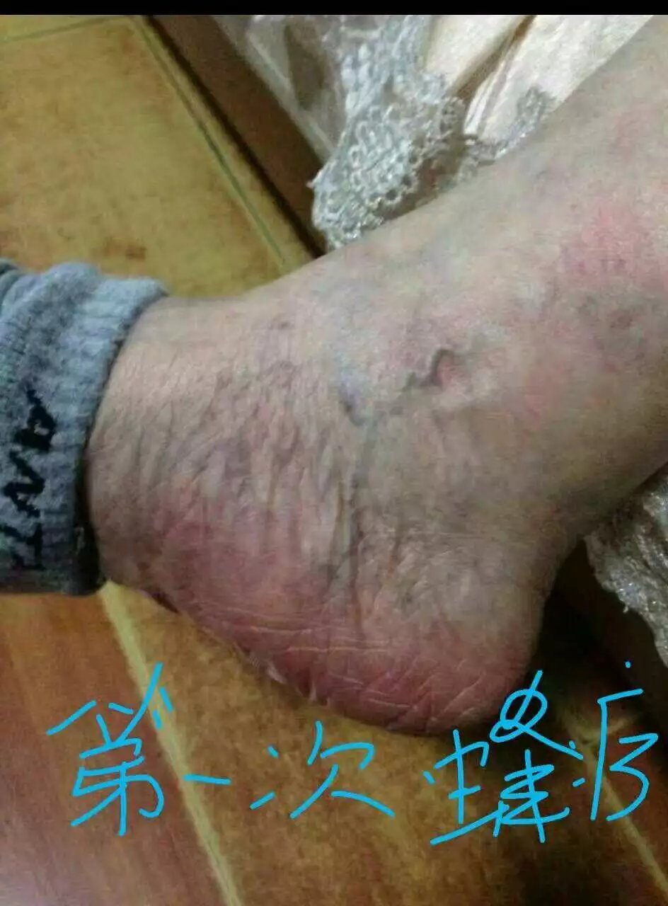 这又是一个特殊效果的病例,老太是因为有类风湿才来蜂疗的,在15年前她做过蜂疗,了解点蜂疗的知识。现在风湿严重了没有去医院,直接找到到了蜂疗所。当老太太脱掉袜子露出了青血丝绕脚,带有曲张脉管炎。每天要吃3顿心脏的药,大腿膝盖臃肿泡泡的,大腿用手指按会有大坑。