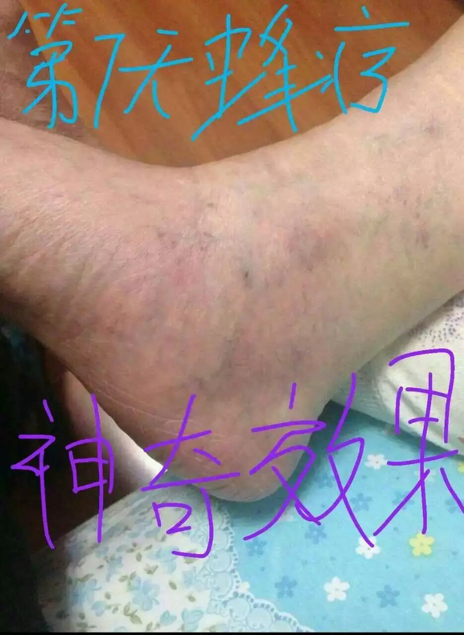 最让人高兴的是本来是治疗类风湿来的,咋也把脚都给治好了,几天的时间用无痛蜂疗,脚上的青血丝神般好转。现在在给老太太看她治疗前脚的照片,她说;这是我的脚吗?她女儿谈笑着说;你看看要不先给她拍下照片为证,她还不承认了呢呵呵、娘俩非常满意。