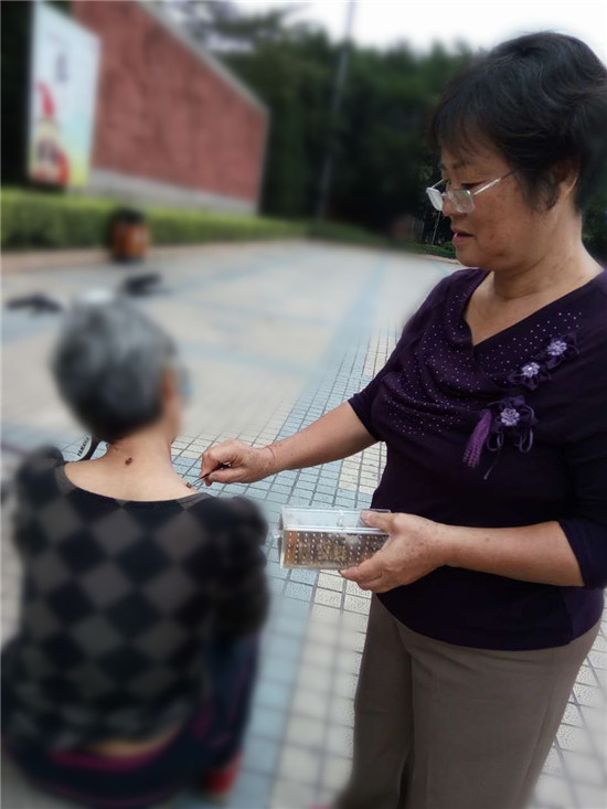 杨大姐用活蜂蜇刺方法给患者进行调理