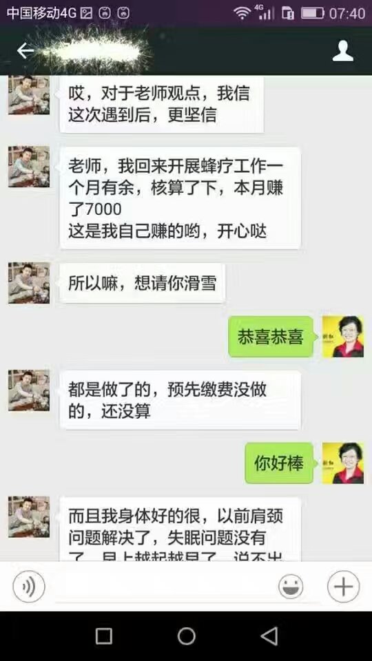 蜂疗作为一种安全有效的纯天然生物疗法,前景必将广阔而灿烂!祝愿我的学生们越来越好!
