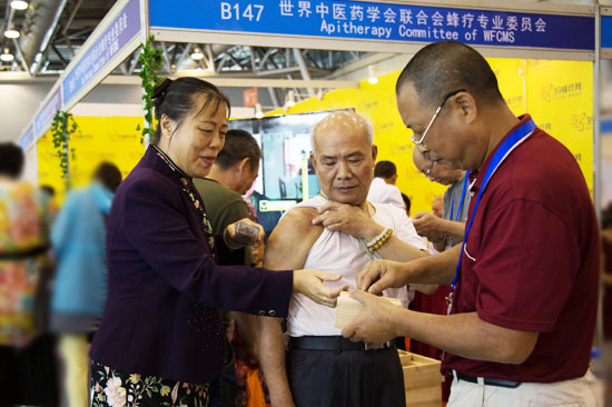 世界中联蜂疗专业委员会成立大会暨世界中联第三届夏季博览会上,蜂疗专家团,博览会现场进行路演咨询