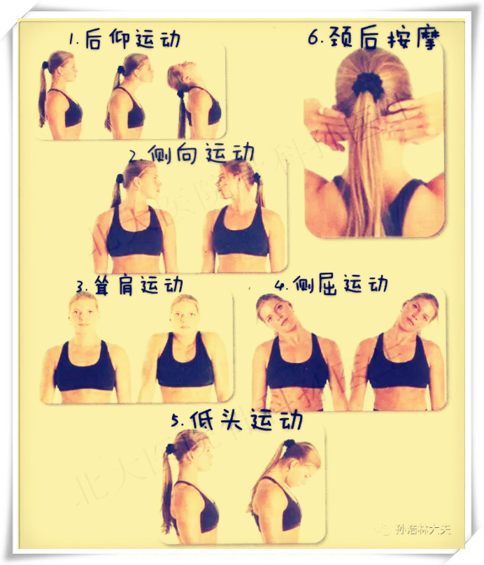 小贴士:做颈椎操的时候一定要放松,动作要缓慢,要持之以恒。而且最好设定每天的最低锻炼量,循序渐进。
