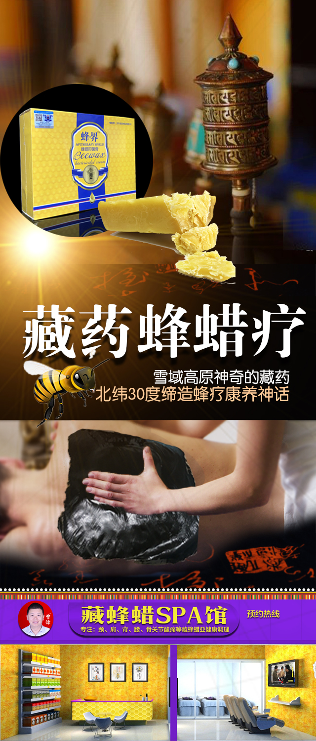 藏药蜂蜡将自然健康的蜂疗与来藏药经典秘方结合,提出调理现代人调理亚健康的最新治疗理念。经过研发团队多年的临床研究证明:本产品效果确切,安全有效改善亚健康状态、调节身体多项机能并能迅速渗透肌肤直达病灶。
