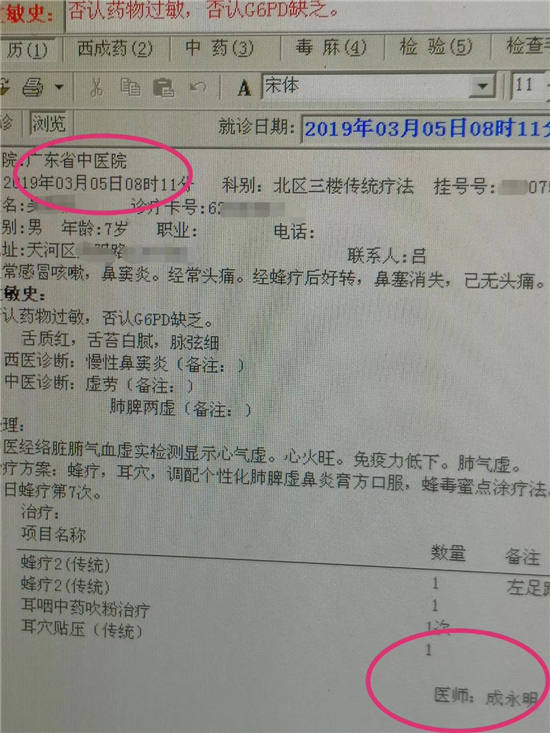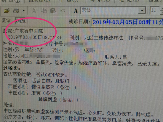 某小朋友,经常感冒,咳嗽,鼻窦炎,因鼻窦炎引起大脑缺氧,经常头痛,学习成绩下降,写作业速度慢,注意力不集中。经过广东省中医院成永明教授蜂疗及膏方治疗以后,鼻塞消失,已无头痛。今天继续来做治疗的方案,是无痛蜂疗,耳穴,调配个性化的膏方,蜂毒蜜点涂疗法。