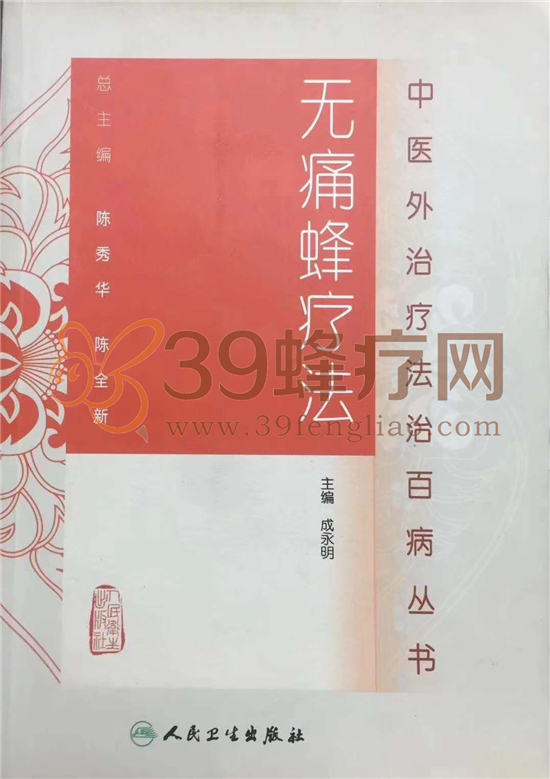 颈椎病,肩周炎,肩颈部的反复疼痛,活动困难,均可以使用广东省中医院总院传统疗法中心的成永明教授的无痛蜂疗法治疗。有一位患者肩周炎已经接近一年时间,多方治疗,效果仍然不好,经过了广东省中医院成永明教授几次的蜂针疗法治疗,基本上已经痊愈。下图一为成永明教授给患者治疗肩周炎的现场。图二为广东省中医院成永明教授的特需门诊。图三为成永明教授主编出版的专著《无痛蜂疗法》,该书2014年12月由人民卫生出版社正式出版。