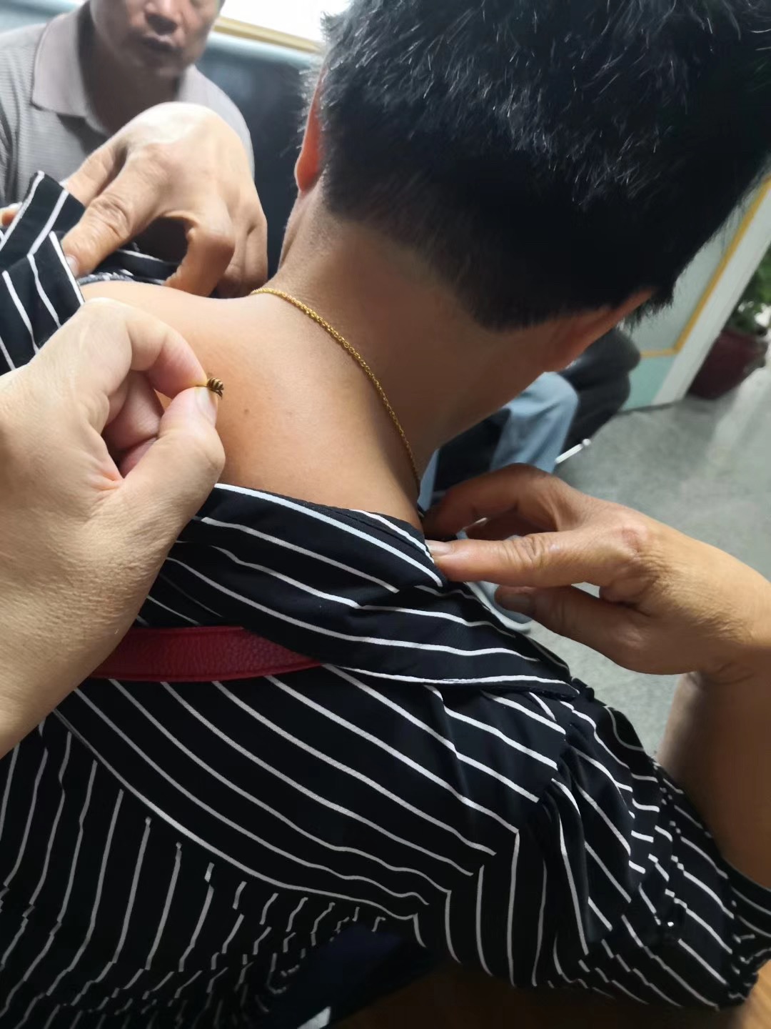 颈椎病,肩周炎,肩颈部的反复疼痛,活动困难,均可以使用广东省中医院总院传统疗法中心的成永明教授的无痛蜂疗法治疗。有一位患者肩周炎已经接近一年时间,多方治疗,效果仍然不好,经过了广东省中医院成永明教授几次的蜂针疗法治疗,基本上已经痊愈。下图一为广东省中医院成永明教授的特需门诊,图三四五六七为成永明教授给患者治疗肩周炎的现场。最后一张图为成永明教授主编出版的专著《无痛蜂疗法》,该书2014年12月由人民卫生出版社正式出版。