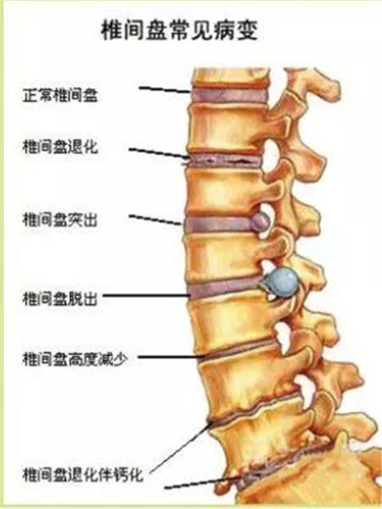 上图是我们的脊椎病变示意图。我们脊椎的骨头和骨头之间,都会有脊间盘。那椎间盘到底有什么作用呢?椎间盘这个东西,里面80%都是水,越是年轻人,里面的水份含量就越高。