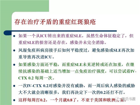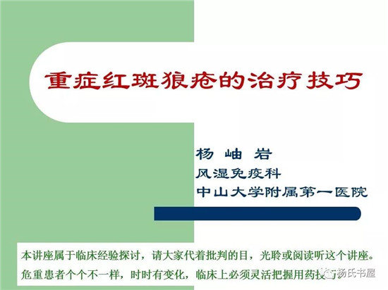 今天应邀在成都医学院第一附属医院举办的国家级继续教育项目《风湿免疫疾病诊治热点问题》会议上,演讲的《重症红斑狼疮治疗技巧》,放上来供各位风湿免疫科通道参考和讨论。