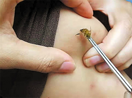 蜜蜂直接蜇&拔下蜂螫针来刺穴位