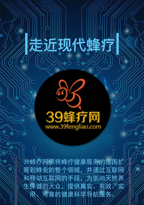39蜂疗网是中国蜂疗行业权威门户网,面向蜂疗专家、蜂疗医院、蜂疗从业者及蜂疗爱好者,提供传统中医学、针灸学、蜜蜂学、蜂疗学研究、技术、保健等领域的互联网线上线下服务。肩负“世界中医药学会联合会蜂疗专业委员会、中国民族医药学会蜂疗分会的国家级两大医疗学会秘书处工作”和蜂疗人才培养重任!