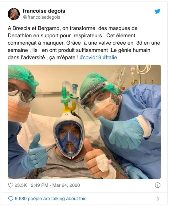 潜水面罩秒变呼吸机!为解燃眉之急,意大利竟想到了迪卡侬!