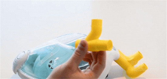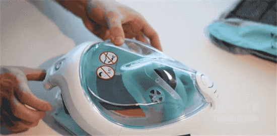 虽然感觉很高科技,可说出来你可能不信,这个呼吸机竟然是用迪卡侬的潜水面罩改造而成。