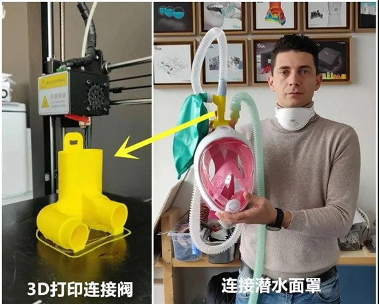 3D打印小小连接器,潜水面罩变成医用呼吸机面罩