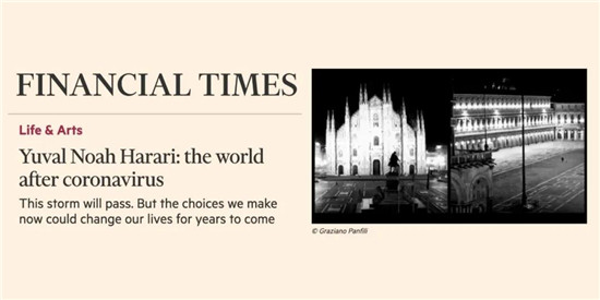 《人类简史》的作者尤瓦尔·赫拉利,上周末在《金融时报》发表了一篇长文《冠状病毒之后的世界》。