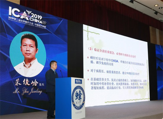 本次大会收到了大量蜂疗研究者投稿的学术论文,经过严格筛选,层层把关,最终评选出一批特别优秀的学术论文。朱俊岭主任投稿的论文(蜂针疗法治疗膝骨关节炎临证心得),以严谨的结构和科学的论证征服了专家评审团,荣获第二届世界蜂疗大会2019年度“优秀论文”奖。朱俊岭主任在学术大会上就这篇论文做了学术报告,赢得了全场的瞩目和掌声。朱俊岭主任就任于绍兴市中心医院中医科,副主任中医师,毕业于北京中医药大学,博士学位,主持浙江省中管局科研课题1项,在国内外刊物发表30余篇,其中SCI论文2篇。现任世界中医药联合会骨质疏松分会常务理事、中国民族医药学会风湿病分会常务理事、世界中医药学会联合会蜂疗专业委员会理事、中国民族医药学会蜂疗分会理事。擅长以中医为主、中西医结合、蜂疗治疗类风湿性关节炎、强直性脊柱炎、风湿性多肌痛、干燥综合征、系统性红斑狼疮、骨关节炎等风湿病,及常见内科疾病。朱俊岭主任不仅是蜂疗临床一线的杰出代表,更是一位潜心研究、笔耕不辍的优秀学术研究者,他对传统中医疗法的态度与热爱令所有蜂界同仁感到敬佩!