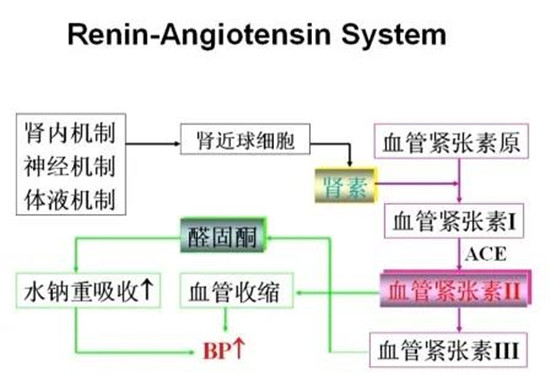 肾素是一种酶,如同“一把钥匙”,启动一个生理调控系统,叫肾素-血管紧张素-醛固酮系统,其中的血管紧张素II可以调节血管的收缩与舒张以及心律的变化,从而控制血压。
