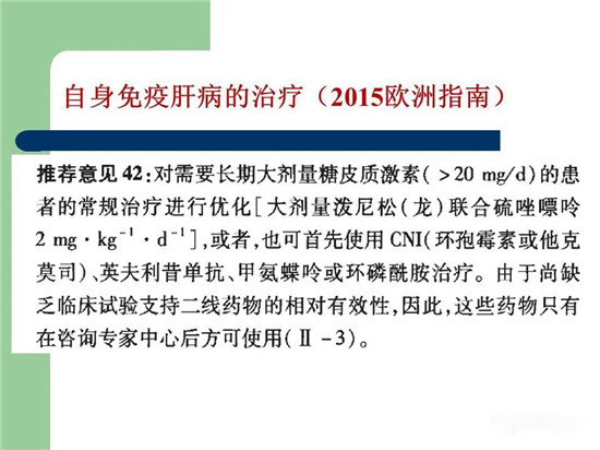 目前临床上,虽然多数(还不是绝大多数)自身免疫性肝炎患者,按照这 “三把斧” 是可以控制病情。但在实际临床中,确实还有为数不少的顽固性、进展型的自身免疫性肝炎患者,用这 “三把斧” 并不能让病人达到疾病缓解,而只是控制在疾病中等活动状态,延缓几年达到肝硬化、肝衰竭。