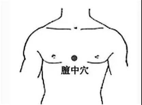 膻中穴是任脉上的主要穴位,常用于治疗胸腹疼痛、心悸、呼吸困难、咳嗽、过胖、过瘦、呃逆、乳腺炎、产后缺乳、咳喘病等。