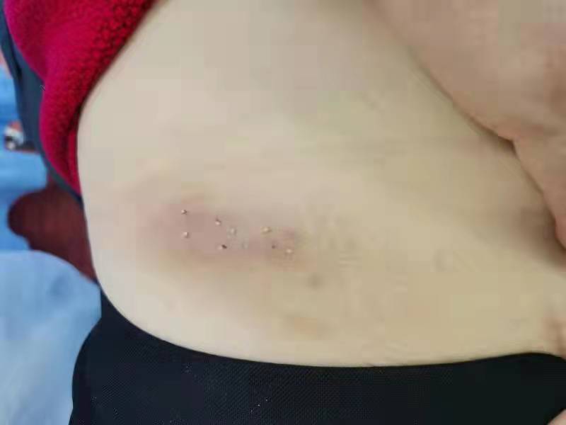脂肪瘤很常见,很多人都不愿意为此动手术。这位62岁的女性患者,侧腹部长了一个约7*2cm的长条状脂肪瘤。经过十余次蜂疗后,脂肪瘤较前变软、减小。