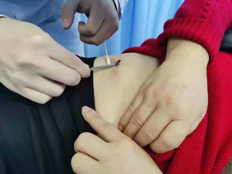 对于这类皮下包块、结节性疾病,通常采用丛集直刺针法,从最低剂量起逐次增加针数,最多达20余针,虽然痛感较其他刺法强,但对于这类有形实邪结聚,包括肿瘤、大关节顽固性疼痛等,通过大剂量在局部形成围攻之势,更能达到理想的效果。