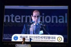 韩国委员长Kyoonhwan CHO 在开幕式现场致辞 国际蜂联主席Gilles RATIA 在开幕式现场致辞 第44届国际养蜂大会(APIMONDIA)暨博览会于2015年9月1519日在韩国大田召开,中国蜂业代表团出席了此次国际蜂业盛会。…2015-09-16 09:40:17