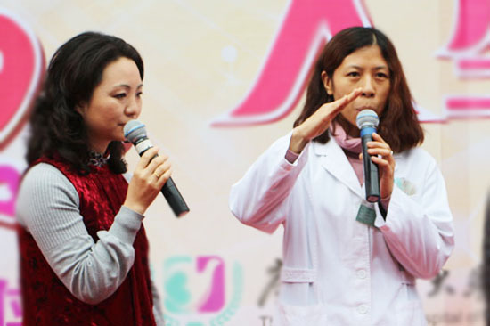 周颖芳老师参加爱心公益活动,并在现场示范讲解中医穴位知识