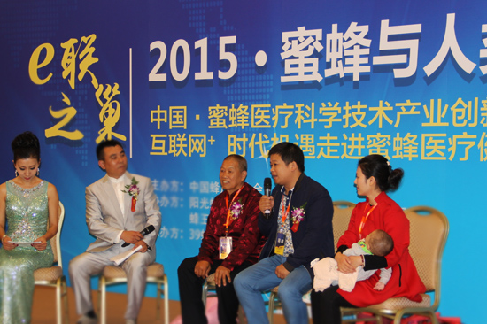 成为本次峰会亮点人物,中央电视台《生活早参考》报道的“蜂”狂的儿子,曾伟先生携父与妻女一家四口也来到了峰会现场。接受了主持人与媒体的采访,也向大家分享了他与父亲用“蜂疗方法”成功抗癌5年的艰辛历程,同时,还为全国上千位癌症患者传授蜂疗方法的传奇故事,令全场与会领导、嘉宾震惊而敬佩。