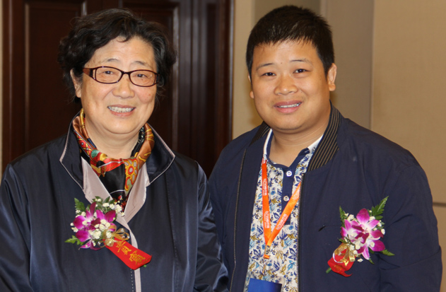 原北京市红十字基金会 于瑞苓秘书长与蜂疗抗癌孝子曾伟在峰会现场合影留念