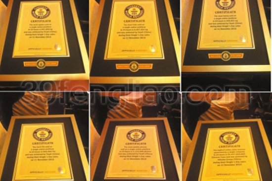 11月12日,吉尼斯世界纪录认证官Charles Wharton宣布,刚刚结束的2015天猫双11共创造了9项世界吉尼斯纪录荣誉。