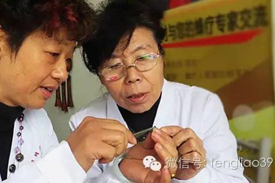 图:王凤进队长向刘红老师潜心钻研蜂疗技术。